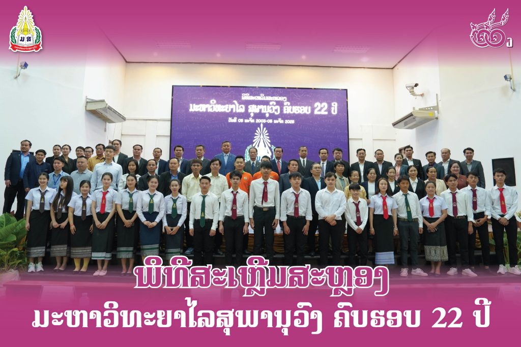 ໃOn the morning of November 3, 2025, at the Souphanouvong University Club, a ceremony was held to celebrate the 22nd anniversary of the university’s founding. It was chaired by Assoc. Prof. Wila Anolak, Director of Souphanouvong University, and was attended by the university’s board of directors, heads of faculties, staff-professors, invited guests, and a large number of students.